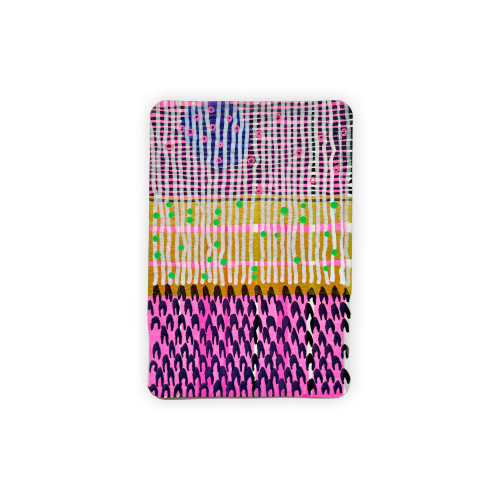 The drawings on wood panels and MDF bend over the edges on occasion, extending the plane and your visual experience. Savor the formal repetition of elements, exploration of space, and the beauty of color, line, and texture.