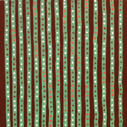 Pink Thing was a moment of wildness that has a surprising order based on two repeating grids one a curtain of lines the other a net of crosses. Occasionally I use pink. It is outside my comfort zone. As a young girl I was overwhelmed with distain for the pink stuff for girls. As a woman I've been able to reclaim pink as powerful for women. Reclaiming it now and again as necessary.