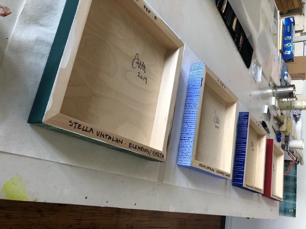 I've signed and labeled the artwork. Now I'll wrap them up for delivery to art consultant Susanna Gold for hanging. Time to get out the packing materials.